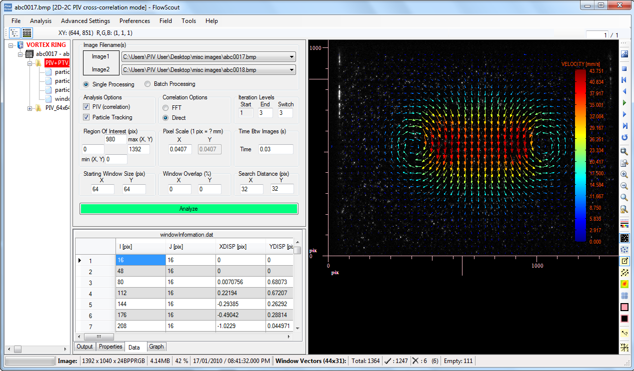 - Standard 2D-2C and 2D-3C Stereo image analysis